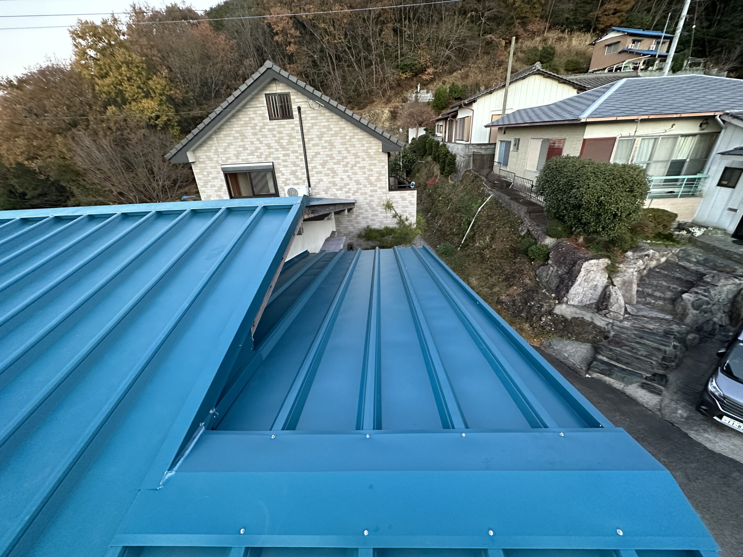 劣化していたガルバリウム鋼板の屋根を、カバー工法で取付しました。