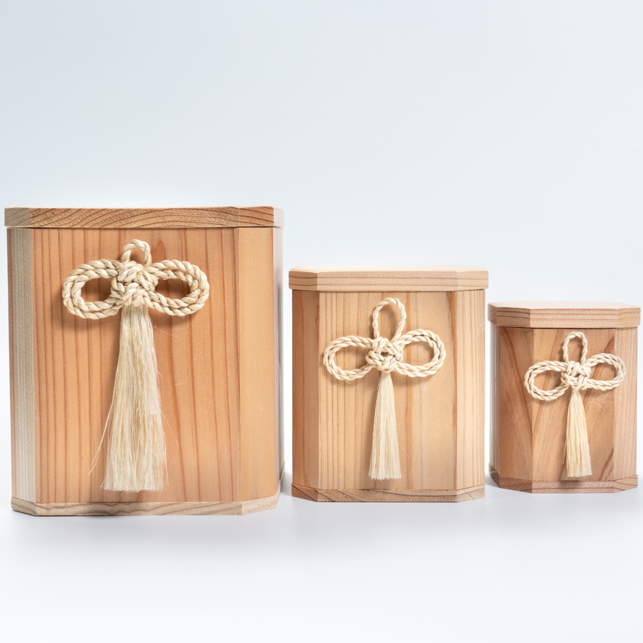 お骨箱は『大・中・小』3種の大きさから、『麻結び』は精麻・藍染・茜染の3色からお選びいただけます。