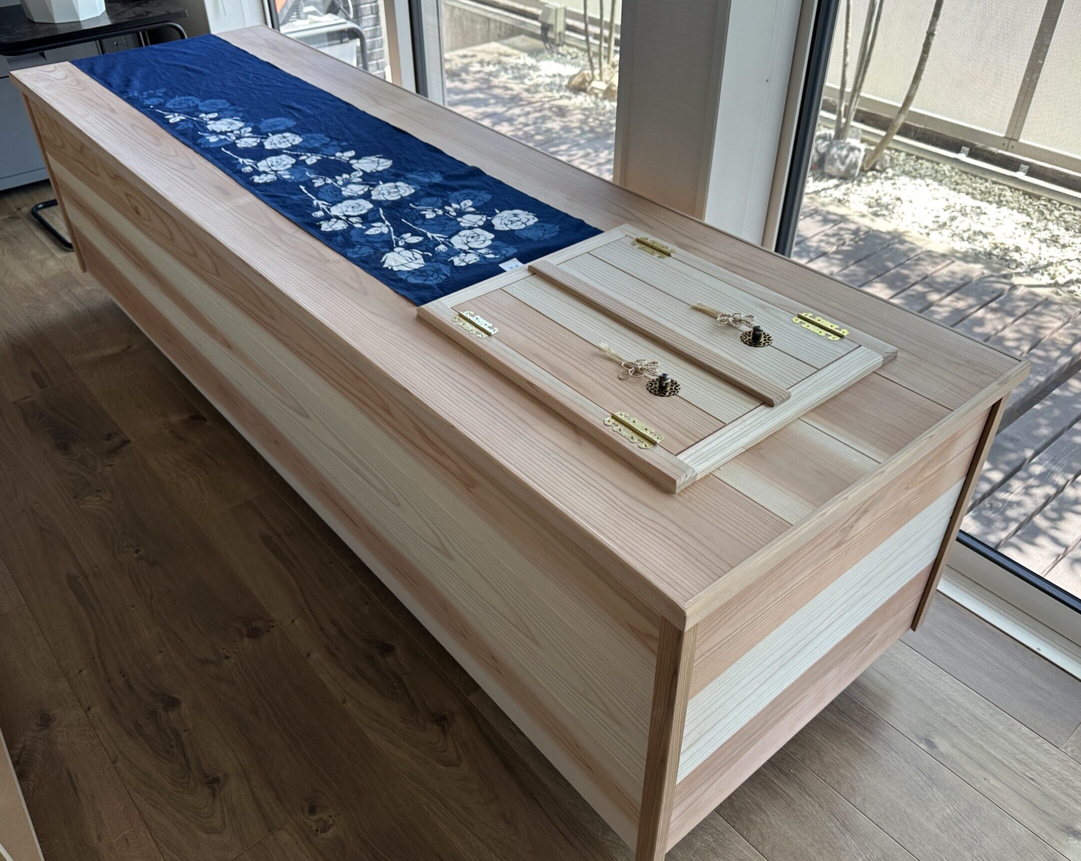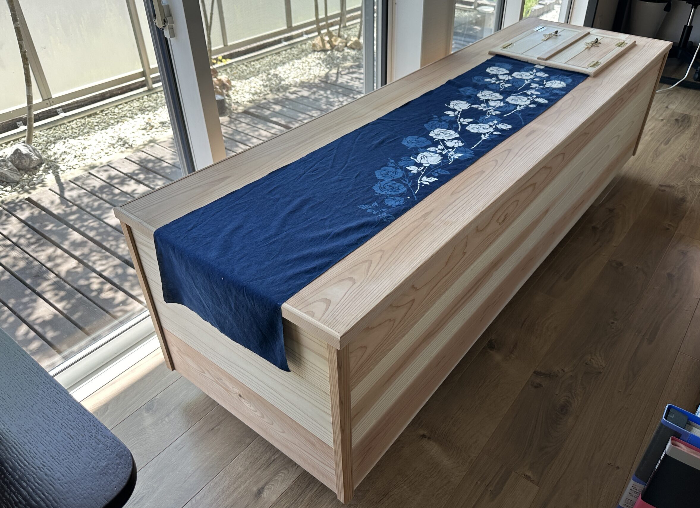 地域に貢献したいという思いで、藍染や日本茜や精麻などの日本古来の地域資源を組み合わせ、徳島「にし阿波」ならではの地元愛がこもった唯一無二のひつぎを開発いたしました!✨