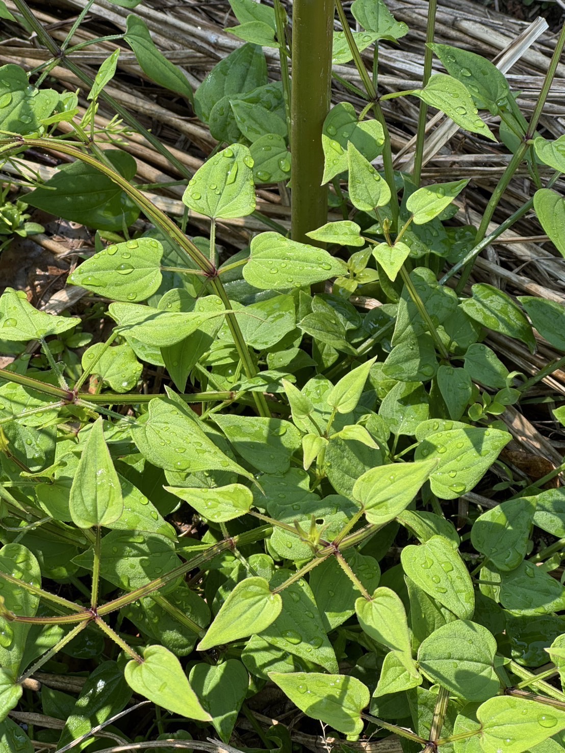 ・茎は四角で棘があって節から4枚、十字に葉が生えている。