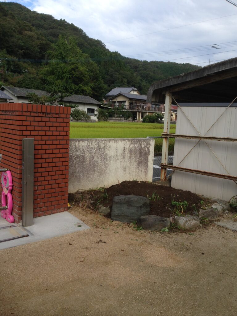 本工事は、台風の被害を受けた修繕工事に伴って移転していた二宮金次郎像の台座を新しく置かせていただきました。